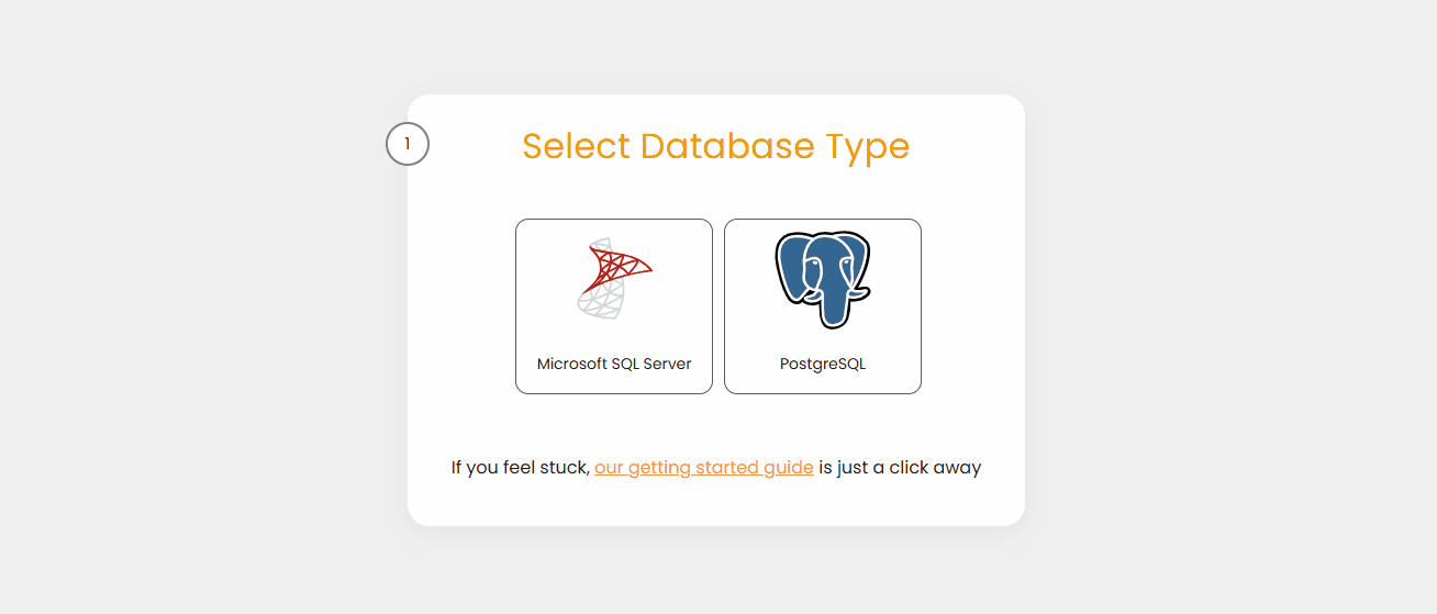 After selecting a database type, proceed to the next step to configure the corresponding database connection details.