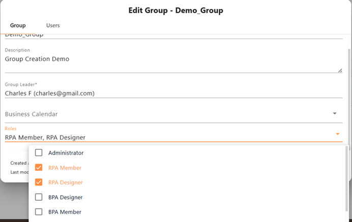 The system applies this calendar only to users who do not have an individually assigned calendar. - Assign one or more Roles to the group.