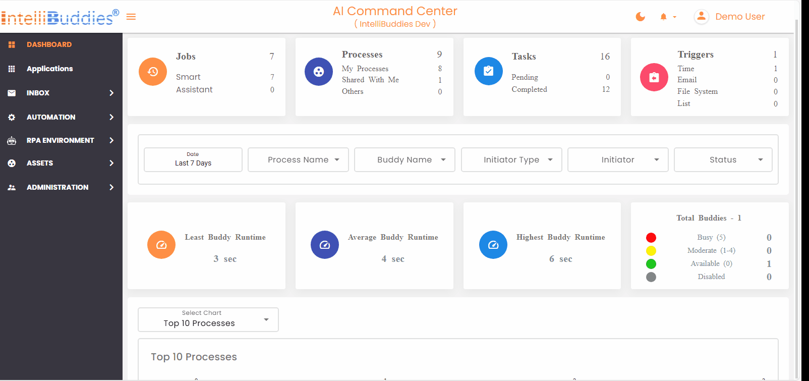 The BPA Processes page provides multiple predefined views to help you quickly filter and manage processes by ownership, status, and collaboration.